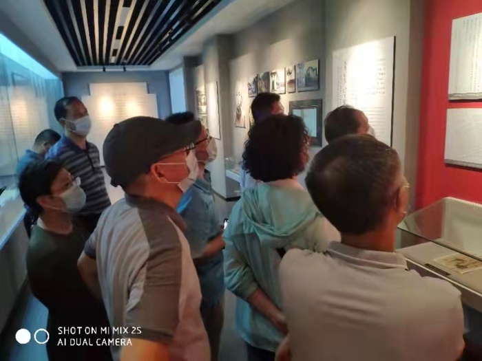 展館內(nèi),豐富詳實(shí)的展品和照片生動(dòng)展示了陳獨(dú)秀先生波瀾起伏的人生畫卷。穿過牌坊內(nèi)兩邊長長的林蔭大道,陳獨(dú)秀銅像屹立于陵園,正如其不朽的精神永存于人民心中。通過講解員的介紹,各位會(huì)員充分了解到陳獨(dú)秀先生的風(fēng)采和驚心動(dòng)魄的人生歷程。