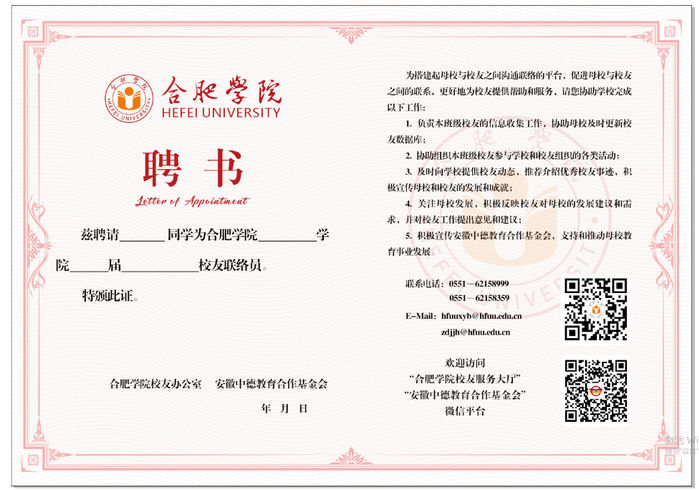 7月8日上午,在合肥學院2021屆畢業典禮暨學位授予儀式上,學校為2021屆畢業生校友聯絡員頒發了聘任證書。學校此次共從11個二級學院選聘了84位校友聯絡員,為母校聯系畢業校友奠定了堅實的基礎。
