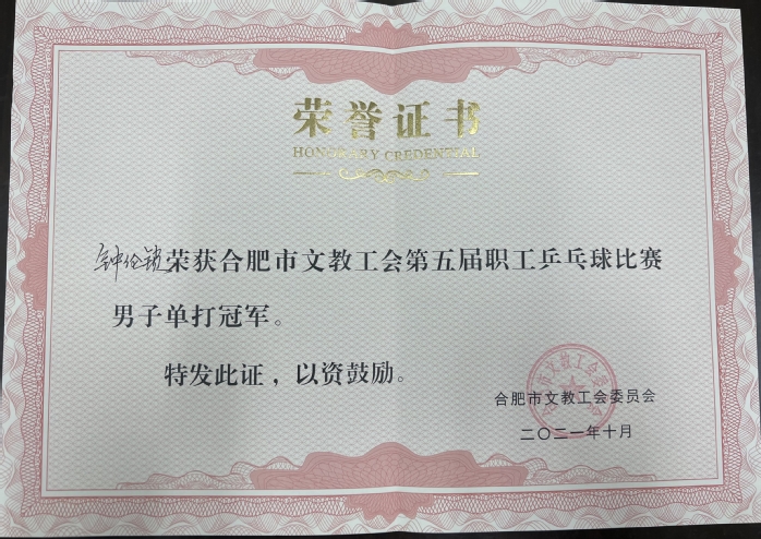 10月28日,合肥市文教工會系統第五屆職工乒乓球比賽在合肥市總工會隆重舉行。來自文教系統內的18家單位、100多名選手參加了比賽。經過激烈拼搏,我校教工代表隊獲得混合團體亞軍,包攬男子單打的冠、亞軍。