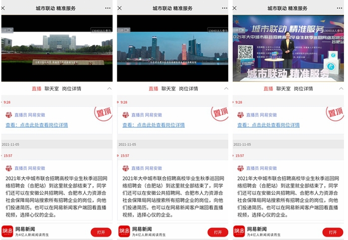 為深入貫徹黨中央、國務院關于促進高校畢業生就業創業決策部署,積極落實黨史學習教育“我為群眾辦實事”實踐活動要求,11月5日,由合肥市人社局、合肥學院、安徽省人才服務中心等主辦,2021年大中城市聯合招聘高校畢業生秋季巡回網絡招聘會(合肥站)圓滿舉行。按照疫情防控要求,本次招聘會采取網絡直播的形式開展。
