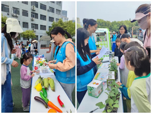 親子互動的“蔬果奧運會” 熱鬧非凡,南瓜保齡球、玉米接力賽等項目,讓家長與孩子攜手在歡樂中競技,獲勝者可兌換環(huán)保小禮物,既增進了親子關(guān)系,又激發(fā)了大家參與環(huán)保的熱情。“舊物大變身” 區(qū)域,學(xué)生黨員帶領(lǐng)大家將舊衣服改造成帆布袋、編織地墊,讓廢舊物品煥發(fā)新生,生動詮釋了循環(huán)利用的環(huán)保理念。