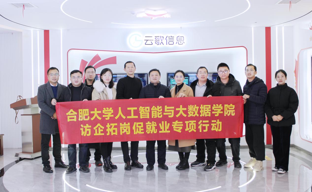 為更好地了解企業(yè)需求,拓展學生就業(yè)渠道,2024117日上午,人工智能與大數據學院積極開展訪企拓崗促就業(yè)專項行動合肥云歌信息科技有限公司,此次走訪由院長余海峰帶隊,院黨委副書記姚蓓蓓、副院長陳圣兵參加,合肥云歌信息科技有限公司總經理顧云接待。