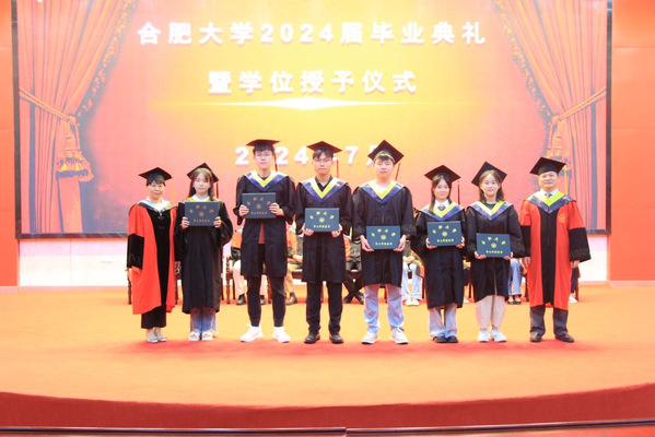 余海峰院長在畢業(yè)典禮上發(fā)表熱情致辭,他回顧了畢業(yè)生們在合肥大學(xué)度過的青春歲月,贊揚(yáng)他們在學(xué)習(xí)、科研及社會實踐等方面取得的優(yōu)異成績。同時,他也鼓勵畢業(yè)生們要勇于面對未來的挑戰(zhàn),保持初心,不斷追求卓越,用所學(xué)知識回饋社會,創(chuàng)造更加輝煌的人生。