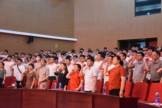 活動伊始,由先進(jìn)制造工程學(xué)院黨委副書記李秀娟帶領(lǐng)全體師生及嘉賓共同奏唱中華人民共和國國歌。隨后,由先進(jìn)制造工程學(xué)院團(tuán)委副書記鐘倫鎖老師帶領(lǐng)全體黨員及黨校學(xué)員們重溫入黨誓詞,會場在歌聲和誓詞的烘托下充斥著莊嚴(yán)與肅穆。