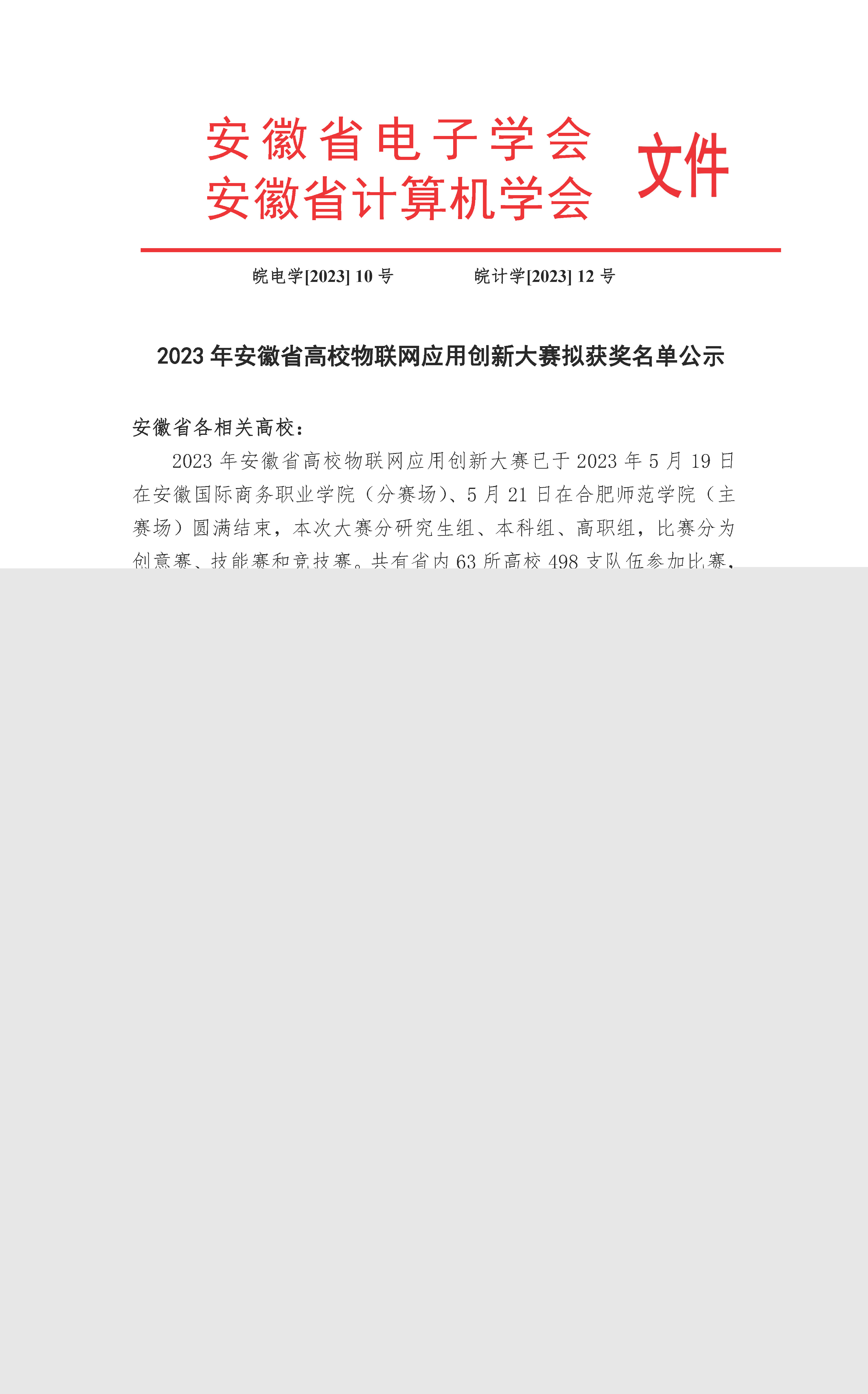 5月20日至21日,由安徽省教育廳主辦,合肥師范學院承辦的2023年安徽省高校物聯(lián)網(wǎng)應用創(chuàng)新大賽決賽成功舉辦。本次省賽,我校共榮獲二等獎6項、三等獎4項、合肥學院榮獲賽事優(yōu)秀組織單位的好成績。先進制造工程學院此次有5支隊伍進入省賽,均取得了二等獎的好成績。