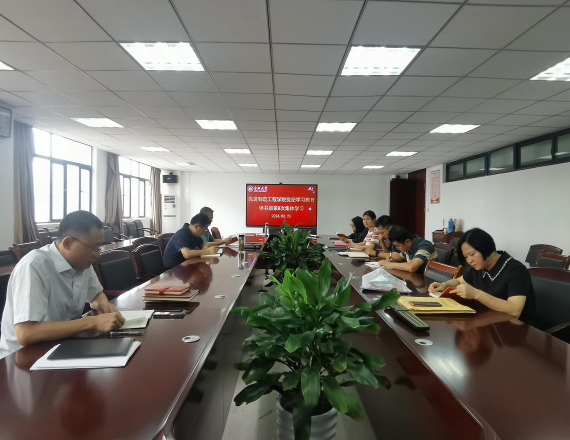 2024625日上午,先進制造工程學院黨委在學院40#305會議室開展黨紀學習教育讀書班第八次集體學習,全體班子成員、科級干部及學院各支部書記參加讀書班。