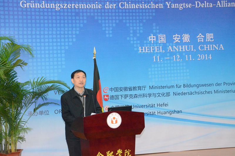 11月12日,由安徽省教育廳、德國下薩克森州科學(xué)與文化部主辦,合肥學(xué)院、黃山學(xué)院承辦的第七屆中德應(yīng)用型高等教育研究與發(fā)展研討會(huì)暨中國長三角地區(qū)應(yīng)用型本科高校聯(lián)盟成立大會(huì)在合肥學(xué)院舉行。來自德國和國內(nèi)近百所高校、企業(yè)代表400余人參與了此次研討會(huì)。德國下薩克森州政府州長施特凡?魏爾、國務(wù)秘書比爾吉特?霍內(nèi),安徽省外辦主任張箭,教育廳廳長程藝,合肥學(xué)院黨委書記蔡敬民、校長張文兵,黃山學(xué)院黨委書記徐成鋼、校長汪建利等出席。論壇開幕式由安徽省教育廳副廳長李和平主持。