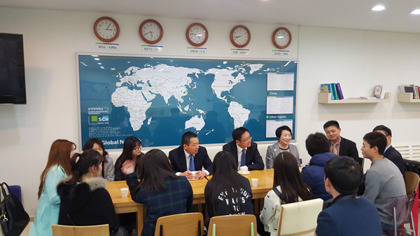 訪問順天鄉(xiāng)大學期間,張文兵與順天鄉(xiāng)大學總長徐教一等舉行了會談;出席了由我校主辦、順天鄉(xiāng)大學承辦的第一屆“合肥學院杯”漢語演講大賽決賽并為獲獎選手頒獎;在金學民副總長陪同下參觀了順天鄉(xiāng)大學技術與創(chuàng)新中心、化妝品檢測中心、孔子學院等處;與我校“2+2”專業(yè)學生進行了座談。