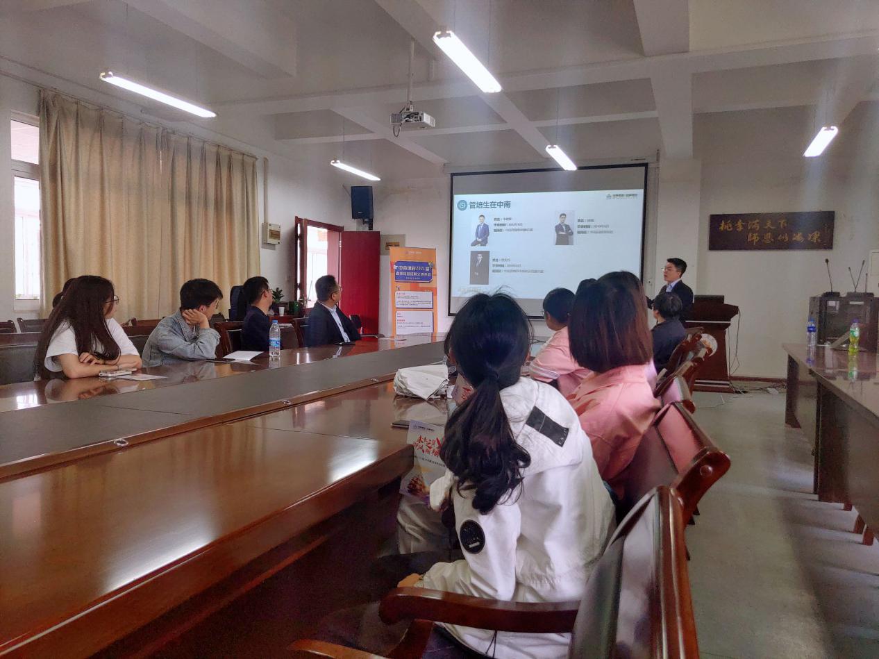 2021429日下午,中南錦時春季校園招聘會于我校一期博學樓C棟會議室順利舉辦。中南錦時HR通過播放宣傳片和PPT展示介紹公司的發展狀況、未來的戰略方向以及此次招聘的崗位,同時與學生面對面交流,對崗位工作內容詳細講解,我校應屆生積極投上個人簡歷。