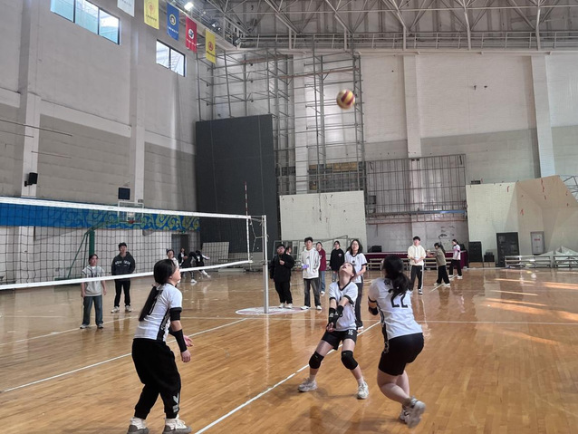 隨著比賽哨聲響起,我院隊員將排球用力拋向空中,奮力發球,只見排球在空中劃過一個漂亮的弧線。雙方你來我往,比賽進行的愈發緊張。但我院隊員毫不示弱,她們竭盡全力,勢必拿下此次比賽的勝利。