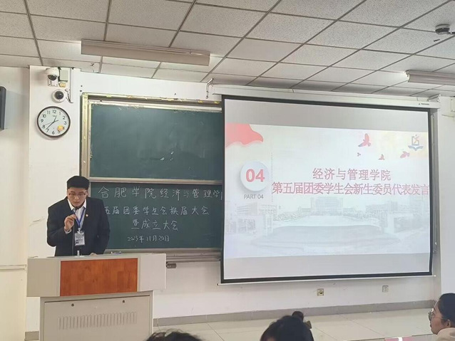 11月20日,合肥學院經濟管理學院第五屆團委學生會暨成立大會于一期五棟101教室順利舉行。經濟與管理學院黨委副書記夏丹青、經濟與管理學院團委書記姚璇、經濟與管理學院第四屆成員以及第五屆學生會全體成員參加此次大會。