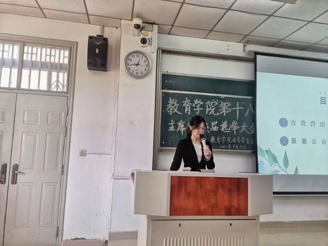 9月11日中午12:10,教育學院第十八屆學生會主席團換屆選舉大會在三棟101教室舉行,教育學院團委指導老師張弦樂、學生會全體成員參加此次換屆,主席團成員沈夢婷主持大會。 大會伊始,全體成員合唱共青團歌。然后,由主席團成員程文靜進行學生會年度工作匯報,程文靜總結在過去一年里,學生會取得了優異的成績,但同時存在一些不足,期望學生會全體成員在接下來的一年能夠不斷努力,再創佳績。然后,由團委指導老師張弦樂為教育學院第十七屆主席團頒發聘書并合影留念。接下來王昕璐代表主席團成員進行發言,訴說了主席團的工作心得感悟,從字里行間能夠感受到她對學生會的熱愛以及對學生會成員的由衷感謝和祝福。接著,開始大會最重要的環節:候選人競選演講。三位候選人18級小學教育專業王美淇、18級應用心理專業吳慧軼、18級小學教育專業李偉按抽簽順序依次上臺進行競選演講。三位競選人結束演講后,開始現場投票。本次學生會主席團換屆競選實行等額選舉,采取不記名投票,由學生會成員投票選出自己心目中理想的學生會主席,充分體現公平公正、人人參與的原則。會議末尾,團委指導老師張弦樂做總結發言。張老師充分肯定了學生會的工作,同時也指出了不足之處,并對學生會今后的發展和工作提出了建議,殷切期望學生會成員不忘初心、砥礪前行,把學院建設的更加美好。大會結束后張老師與第十七屆學生會所有成員在厚德廣場一起合影留念。 聚是一團火,散是滿天星。身為教育學院的一份子,無論我們身在何方,都會將教育學院的精神傳承下去,讓優秀成為一種習慣! (教育學院記者團記者 陳復雁)