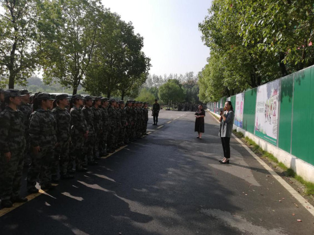 經歷了數天軍訓的同學們個個昂首挺胸、英姿颯爽,彰顯著屬于教育學院學子“巾幗不讓須眉”的精神風貌。慰問開始,首先由黨委副書記饒睿老師致辭。代表院黨政表達了對新生們的親切慰問與高度贊許,鼓勵同學們提升自身身體素質,強化國防意識,將軍訓所感所得帶到今后的學習生活中去。隨后,江芳院長致慰問辭,在致辭中勉勵新生們要秉持教育學院“讓優秀成為一種習慣”的優良傳統,發揚不怕苦、不怕累、守紀律、敢拼搏的精神,上好“軍訓第一課”,并將嚴于律己、刻苦訓練的精神在今后的、工作和生活中發揚過大。她希望同學們有困難第一時間找學院,歡迎同學們隨時和老師交流,同時預祝同學們軍訓取得好成績江院長還對承訓教官們這段時間的辛勤付出表示衷心的感謝和誠摯的敬意,充分肯定了軍訓成果,并與教官們進行了親切交流。