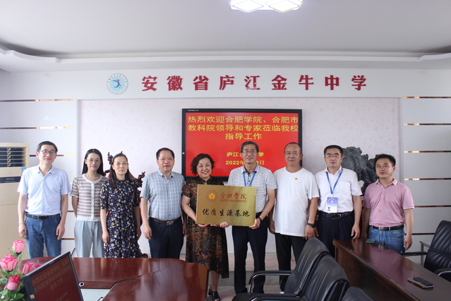 6月9日,教育學院院長江芳、副院長衛萍、副書記王迅、黨政辦主任杜啟明以及魏曉媛博士一行,前往廬江中學、廬江金牛中學開展優質生源基地簽約授牌及招生宣傳活動。