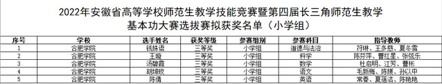 近日,省教育廳公布了2022年安徽省高等學校師范生教學技能競賽獲獎名單,教育學院推選的7名學生表現出色,獲得一等獎1項,二等獎1項,三等獎5項。