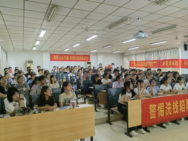 活動開始時,工作人員向新生發放了反詐騙、反洗錢宣傳手冊,并結合真實案例,為同學們講解了如何甄別、遠離詐騙洗錢陷阱。工作人員分享了應對電信詐騙小妙招,即“未知鏈接不點擊,陌生來電不輕信,個人信息不泄露,轉賬匯款多核實”。希望大家增強反詐騙意識,筑牢防騙銅墻鐵壁。 在反洗錢宣講環節,工作人員邀請同學們發表對洗錢這一行為的見解,現場氣氛活躍,同學們積極搶答。洗錢即將犯罪或其他違法行為所獲得的違法收入通過轉化、掩飾、隱瞞使其在形式上合法化的行為。工作人員呼吁大家共同助力反洗錢,在辦理業務時,帶好有效證件;不出租外借自己的證件;不用自己的賬戶為他人提現。 本次講座進一步提高了2023級新生對電信網絡詐騙的重視程度,推廣了防范電信網絡詐騙、反洗錢的方法,為平安校園和文明校園奠定了良好基礎。(撰稿:彭錦 審核:王迅) |