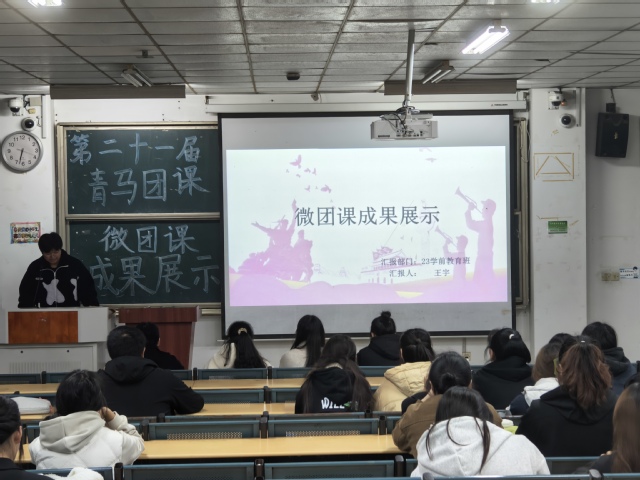 11月13日晚6:30分,教育學(xué)院于3棟101教室舉辦了第二十一屆青馬團(tuán)課的微團(tuán)課展示。本次活動(dòng)由組織部委員徐錦瑤主持,評(píng)委由主席團(tuán)成員周天藝、芮鷺潔,團(tuán)委學(xué)生兼職副書記屠厚輝、李艾錦擔(dān)任,各學(xué)員以班級(jí)或部門為單位參加,各小組的12名代表學(xué)員分別上臺(tái)展示并交流,用百年奮斗歷程,筑牢青年思想根基。
