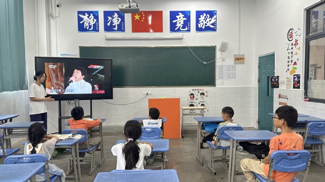 為深入學習貫徹黨的二十大精神,培育青年學生深厚的家國情懷,深深扎根人民,始終服務人民。7月5日下午,合肥大學教育學院“同筑鄉村夢,共‘育’振興果”志愿服務隊于合肥市小廟鎮蜀山行知學校開展了暑期“三下鄉”社會實踐活動,老師魯丹妮和郭艷寧為同學們帶來了“手語唱紅歌,無聲寄華夏”主題課程。 課程伊始,老師向同學們提問關于手語的知識,激發同學們的興趣,并簡單地介紹了手語的概念、在實際生活中的運用及歷史文化背景。隨后,老師向同學們展示基礎手語表達方式的圖片并播放視頻《國家》,讓同學們感受歌曲的旋律、節奏,體會歌曲的思想內涵。接著,學生跟隨老師的手勢進行模仿和練習,學習手語操的基本動作和技巧。