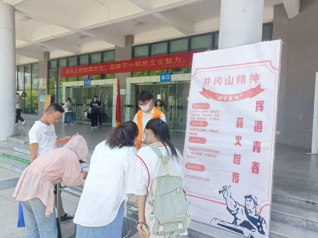為深入學(xué)習(xí)宣傳貫徹習(xí)近平新時代中國特色社會主義思想和黨的二十大精神,引導(dǎo)動員青年學(xué)生大力弘揚井岡山精神,加強學(xué)生紅色基因教育傳承。2023612日在生物食品與環(huán)境學(xué)院團委的指導(dǎo)下,合肥學(xué)院“星火燎原,光耀井岡”宣講團于二期食堂門口舉辦了“研學(xué)星火”活動,活動主題為“學(xué)井岡山精神,樹新風(fēng),報祖國”。