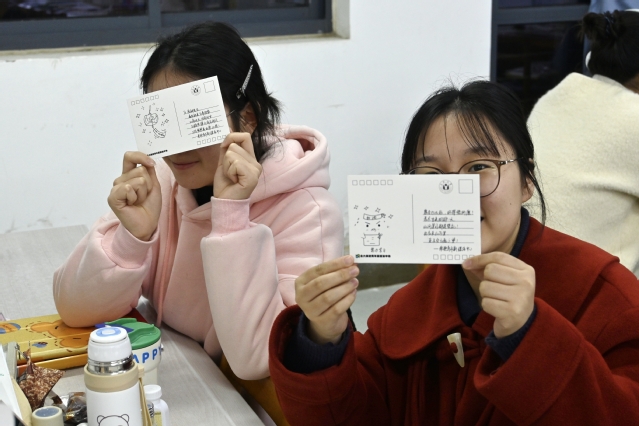 南艷青年新媒體中心精心策劃,制作了滿載深情的精美明信片,承載著對考研學子誠摯的祝福。考研自習室里,學子們聚精會神、筆耕不輟,為實現夢想而不懈奮斗。南青成員們輕聲推門,將一張張飽含祝福的明信片送到考研學子的手中,并與他們進行簡短而溫馨的交流,用鏡頭記錄下這份溫暖的舉動。這些由南青成員手寫的明信片,不僅是祝福,更是力量的象征,為考研學子提供了心靈的慰藉,溫暖的話語猶如冬日爐火,給十一月的自習室帶來融融暖意。“明信片畫的好棒,謝謝學弟學妹們!”奮力備戰的學姐在鏡頭前留下明媚笑容。隨著一張張明信片的傳遞,活動在一篇溫馨和諧的氛圍中圓滿結束。