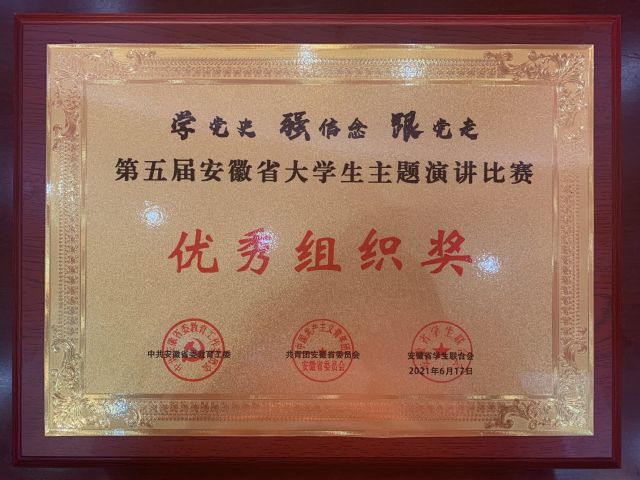 在黨的百年華誕即將到來之際,第五屆安徽省大學生主題演講比賽在我校舉行,是安徽省教育工委、團省委對我校工作的肯定,也是對我校黨史學習教育效果的中期檢驗,同時還是對我校組織活動能力的一次考驗。經過省委黨史教育領導小組辦公室指導,團省委學校部協助籌辦,大賽圓滿落幕,本次大賽既是一場演講比賽,更是一堂深刻的青春思政課,引領著全校學生從重溫輝煌百年黨史中激發信仰、獲得啟發、汲取力量,不斷增強“四個自信”,繼承紅色基因,努力做到學史明理、學史增信、學史崇德、學史力行。