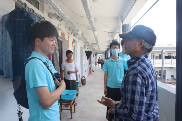 6月26日,團隊前往岳西縣蓮云鄉珠屋敬老院,了解老人們生活現狀,幫助老人打掃衛生、整理床鋪,傾聽老人滿懷感激地分享自己與中國共產黨的故事。有兩位爺爺向隊員們展示了自己親手縫制的帶有五角星的帽子,這些五角星是尼龍化肥袋、橫幅、甚至易拉罐上剪下的。爺爺們說,他們最敬佩的就是“帶五角星帽子的人”。隊員們在活動中深受觸動。