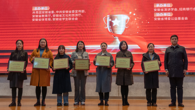 25日晚上,團省委副書記竇賢琨、省委宣傳部、省體育局、招商銀行合肥分行、合肥學院、省演講學會有關負責同志出席典禮并頒獎。