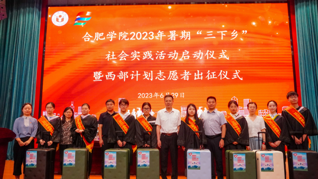 6月29日下午,我校2023年大學生暑期“三下鄉(xiāng)”社會實踐活動啟動儀式暨西部計劃志愿者出征儀式在圖書館報告廳隆重舉行。校辦公室、宣傳部、教務處、學生處、馬克思主義學院、團委部門負責人,各學院黨委副書記、團委書記、各團隊帶隊老師、馬克思主義學院指導老師、學生志愿者代表參與儀式。儀式由校團委副書記李妍妍主持,校黨委副書記劉建中出席儀式并發(fā)表講話。