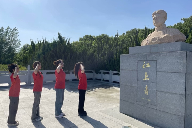 傳承紅色精神,追尋歷史記憶。團隊成員跟隨村黨總支書記惠朋一同參觀了江上青烈士陵園。團隊成員在陵園中感受到莊嚴和崇敬的氛圍,了解到江上青的家庭背景和犧牲奉獻的英勇事跡。隨后,慰問組對當地一位八十多歲的老黨員進行慰問,老黨員為惠廟村的建設和發展默默奉獻半生心血。通過老黨員的親身講述,志愿者們真切地感受到老黨員的堅定信仰和為民服務的情懷。