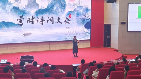 4月21日,合肥大學第一屆鶯時詩詞大會在圖書報告廳A順利舉行。共有六所學校受邀參與比賽,分別是安徽大學的青銅詩社、安徽醫科大學的激流文學社、合肥大學的青月詩文協會、安徽三聯學院的紫藤文學社、安徽藝術學院的蕓窗煮字文學社,以及安徽職業學院的思源文學社。