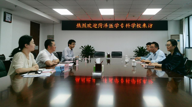 丁增云對菏澤醫(yī)學(xué)專科學(xué)校各位領(lǐng)導(dǎo)的到來表示熱烈歡迎,介紹了我校人才培養(yǎng)、專業(yè)建設(shè)、創(chuàng)新創(chuàng)業(yè)、社會實踐、國際化辦學(xué)以及師資隊伍等基本情況。