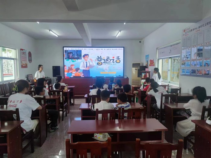 為豐富社區(qū)兒童暑期生活,團隊成員去往多個社區(qū),搭建“七彩課堂”教育平臺。7月17日下午,來蘇社區(qū)內(nèi),科普組的同學(xué)發(fā)揮師范類專業(yè)的優(yōu)勢,開展推廣普通話的公益課堂。同學(xué)們通過互動式教學(xué)和有趣的語言游戲,讓小朋友們在輕松愉悅的氛圍中了解普通話的重要性。