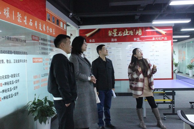 會前,張愛萍一行在企業員工王凱的陪同下參觀調研了該企業的辦公環境、經營情況、項目成果等,詳細收集了相關行業的發展情況和用人需求。
